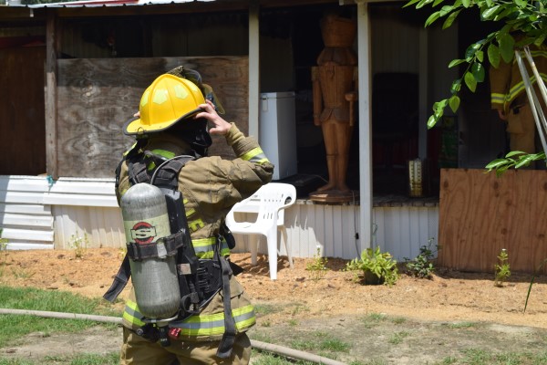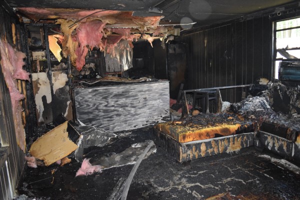 JONES COUNTY, Miss. - A trailer home in the Sandersville community is considered a total loss after it caught fire Sunday afternoon. At 12:13 P.M., Sandersville, Rustin, Sharon and Powers Volunteer Fire Departments responded to the scene of the house fire on Highway 11, just North of the Sandersville city limits. The fire was initially called in by a neighbor who advised that no one was home, and that black smoke was showing. When fire units arrived on scene, they confirmed that heavy smoke was pouring from the house but no visible flames from the outside. Sandersville firefighters were the first to make entry into the home. A firefighter on scene stated that upon entry, "it was rolling. When I went in, I pushed the fire to the back; it wasn't hard. It was about where the window is, [I] pushed it all the way to the back. It's all burnt up inside." From the time firefighters first made entry to the time the fire was out only took moments, but due to the intense heat, the metal shell of the building, and the undetermined amount of time the fire had been burning before fire units were called, the home is considered a total loss.