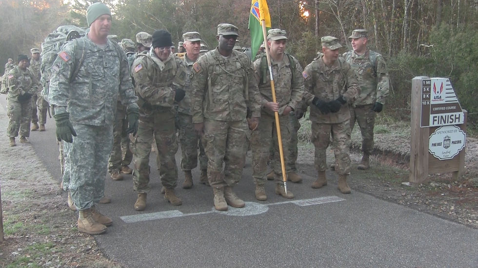 HATTIESBURG, MISS - Soldiers from the Camp Shelby military base hit the ground moving early Wednesday morning. These men and women participated in a 10k march carrying 35 pounds of nonperishable items to a drop off point located at the Clyde Depot Station on the Longleaf Trace trial. “In midst of running with all this weight on their backs they were bringing us joy, and the gift they are giving to the community is huge for families who are hungry and don't always know where their next meal is coming from,” Executive Director for the Edward Street Fellowship Center, Ann McCullen said. “This is a tremendous blessing.” Soldiers from Camp Shelby’s military base saw today's march as a unique opportunity to give back to the community. “Well so, it's the holiday season and we love to give back whenever we can,” the Commander of 177th Armored Brigade, Colonel Jack Vantress said. “We got families inside our service center hurting that we always try to take care of.” Today’s mission consisted of taking care of the community, and that is exactly what these soldiers did. With 41 soldiers carrying 35 pounds, Camp Shelby managed to donate more than 14-hundred pounds of nonperishable items, which is ready to distribute across seven counties. First Sargent, Kerry Koepka says the best part of today’s march is the soldiers’ willingness to participate in the event. “It's all voluntary,” Koepka said. “Every soldier that came out here today was on a voluntary basis.” After crossing the finish line, these soldiers could finally see the fruits of their labor, and reflect on what they mean to the community and what the community means to them. The seven counties food will be distributed across are Covington, Forrest, Jasper, Jeff Davis, Jones, Lamar, and Wayne counties.